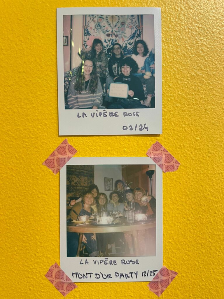 Nous avons les fondatrices de La Vipère Rose, Naïma Lepetiroi et ses tatouages cyanotypes, et Semper Eadem avec ses visages main levée aux tracés fluides. Elles ont été rejointes par deux handpokeuses; Dudu & Seko, artiste féministe au style naïf et Clairon, créatrice de joyaux et ornementeuse. Emeline Bertinelli, spécialiste du tatouage minimaliste naïf est arrivée en septembre 2024. Enfin Marion hgttt rejoint l’équipe en avril 2025 avec son style figuratif et onirique et Oh My Goz et son univers bleuté en septembre 2025. Chlorys des Bois, la nymphe des thèmes végétaux et des champignons travaille à l’atelier en tant que guest permanente.